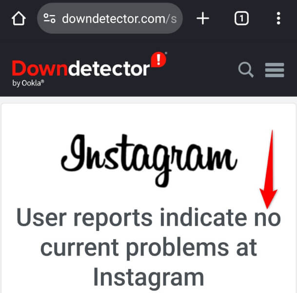Platformun kapalı olup olmadığını kontrol edebilirsiniz.DownDetector'da Instagram sayfası. Bu site size bir çevrimiçi hizmetin kesintiye uğrayıp karşılamadığını söyler. Instagram'ın düştüğünü fark ederseniz, şirket sorunu çözene ve hizmeti geri getirene kadar bekleyin.