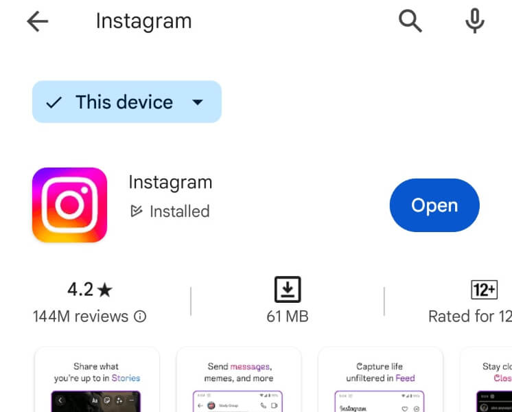 - AçıkGoogle Play Store, bulmakInstagramve dokununDüzenlemek.