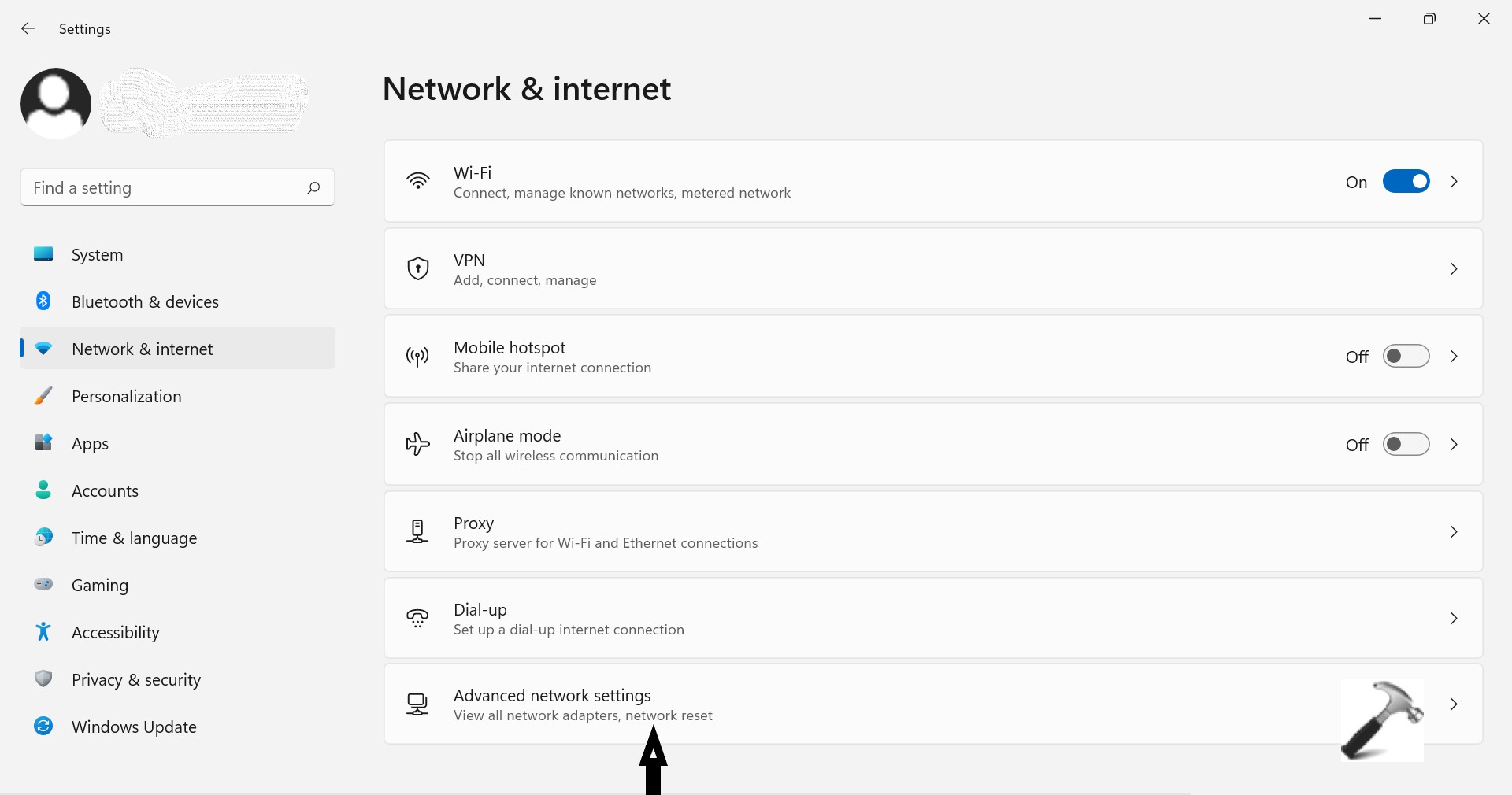 3. SeçinGelişmiş Ağ Ayarlarısağ taraftan.