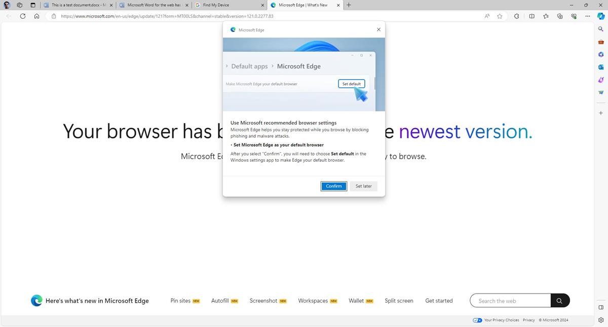 Tarayıcı Seçimi İttifakı ayrıca Microsoft'un sık sık varsayılan tarayıcıyı güncellemeler yoluyla Edge'e çalıştığını ve ekipler veya Outlook gibi uygulamalardan bağlantıları Microsoft Edge'de açmaya zorladığını savunuyor. Windows ayrıca, kullanıcıyı kenardan geçmeye göre önerilen ayarları kullanmak için koaksiyel olarak görüntüleyebilir. Microsoft Edge daha fazla hileye başvurdu, tarayıcınızdan sekmeleri içe aktarmaya çalışabilir.