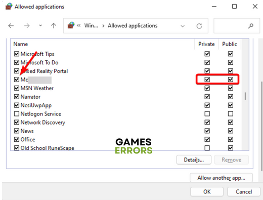 - Ardından, izin verilen Uygulamalar penceresinde,Ayarları Değiştir. Şimdi, izin verilen uygulamalar ve özellikler listesindeki oyunu kontrol edin.