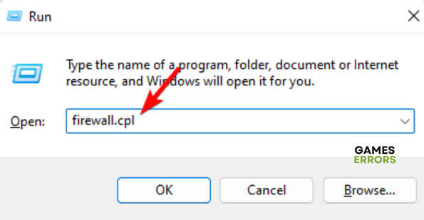 - BasınKazanç+RKısayol tuşları açmak içinKoşmakDiyalog, Firect Wall.cpl yazın ve vurunGirmek.