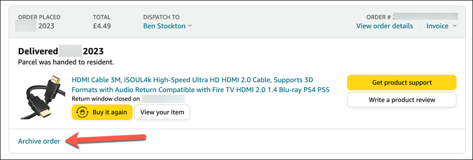 Bahsettiğimiz gibi, sipariş geçmişinizi silmek için en iyi yöntem onları hiç silmek değil - onları arşivlemek. Bir sipariş arşivlemek onu silmez, ancak daha az görünür kalan, ancak yine de erişilebilir olan ayrı bir sayfaya taşır. Hesap başına 500 sipariş arşivleyebilirsiniz.