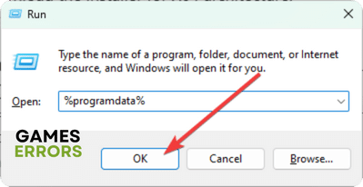 5. Klavyede Win + R tuşlarına basılarak çalıştırın, %ProgramData %yazın ve Tamam'a tıklayın.