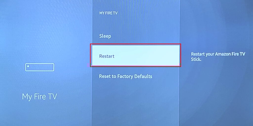 Ateş TV'nizi yeniden başlatma geçici sistem hatalarını ve uygulama arızalarını çözebilir. Bir aygıt yeniden başlatma gerçekleştirme, uygulamaların sorunsuz bir şekilde çalışması için belleği serbest bırakır.