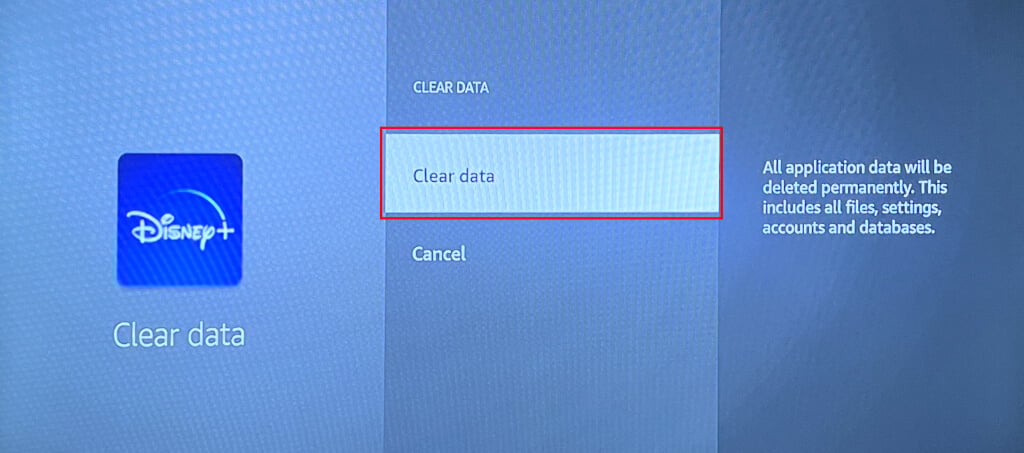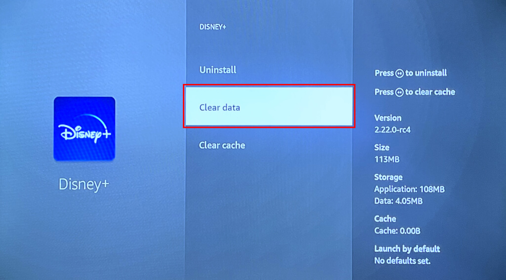 Not:Disney+ verilerinin silinmesi, uygulamanın ayarlarını, dosyalarını ve hesap bilgilerini Fire TV'nizden kaldırır.