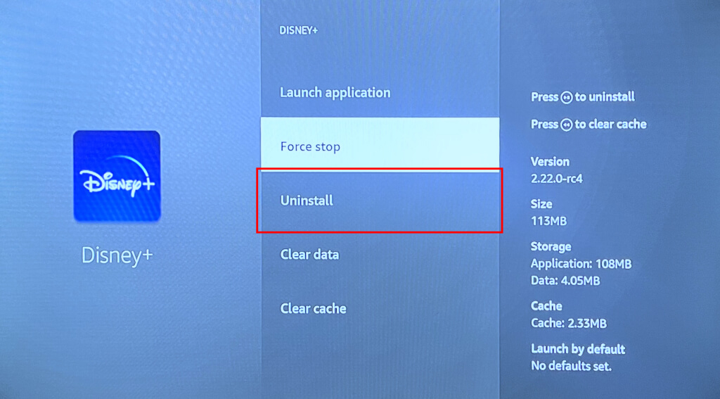 Disney+ 'yı Fire TV'nizden kaldırın ve yukarıdaki düzeltmeleri denedikten sonra uygulama arızalanırsa uygulamayı yeniden yükleyin.