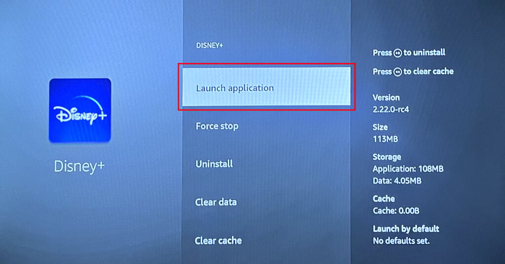 - 5-10 saniye bekleyin ve seçinBaşlatma BaşvurusuDisney+ Plus'ı yeniden açmak için.