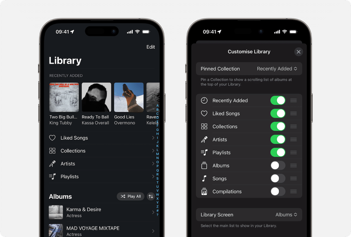 Kullanıcılar kütüphane ekranını üç yeni şekilde özelleştirebilir: