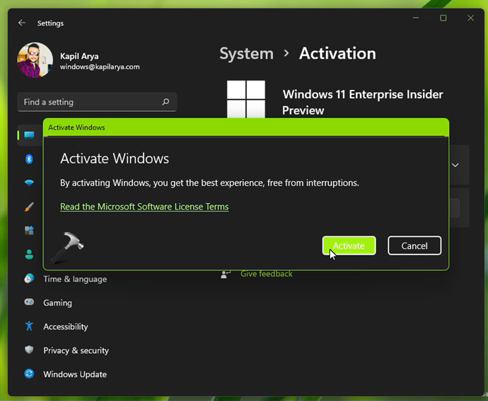 5.Sonra tıklayınEtkinleştirmekWindows'u etkinleştirin.