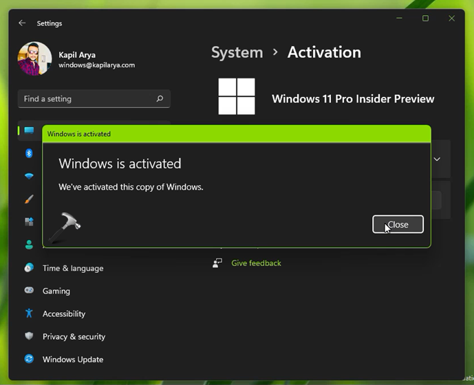 6.Birkaç dakika içinde, sürümünüzün Windows 11 Pro olarak değiştirildiğini ve Windows'un etkinleştirildiğini göreceksiniz, çünkü aynı sistemi daha önce Enterprise Edition'a yükselttiniz.