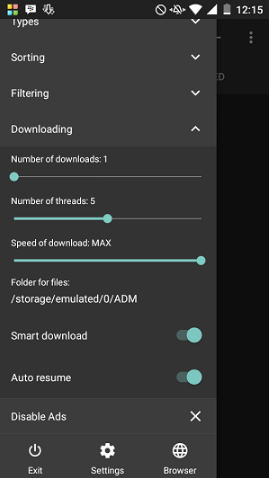 Alternatif olarakAndroid için IDM, ADM kapsamlı özelliklerle donatılmıştır. Yalnızca indirilen dosyaları indirmek ve yönetmek için değil, gömülü başka birçok özellik de vardır.