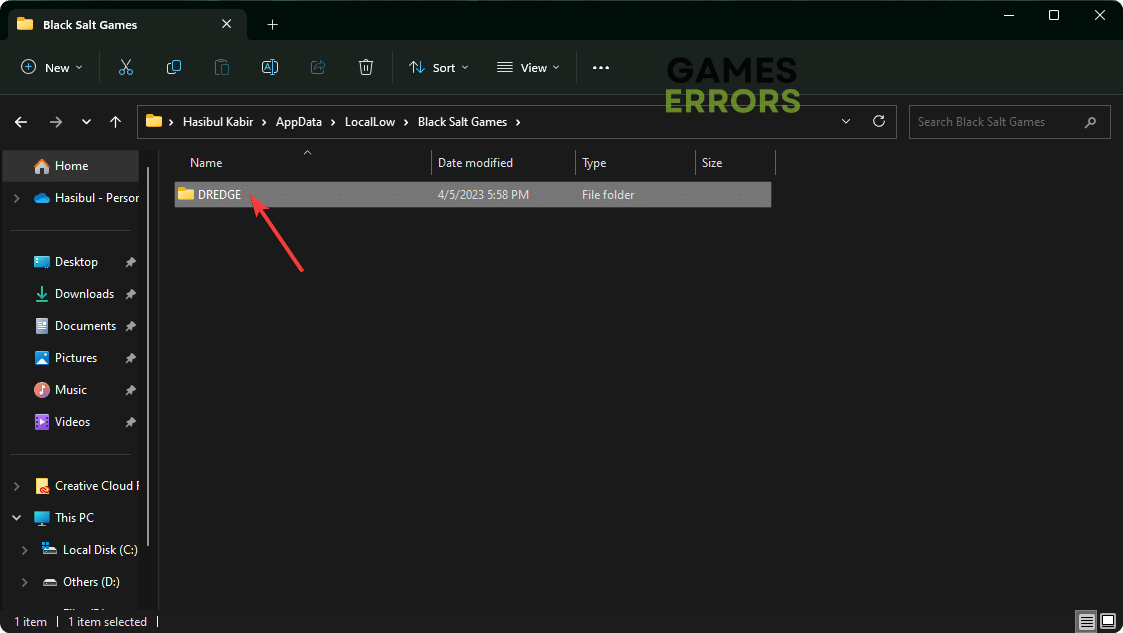 - Dredge-Settings.bin'i bulun ve bu dosyayı silin.