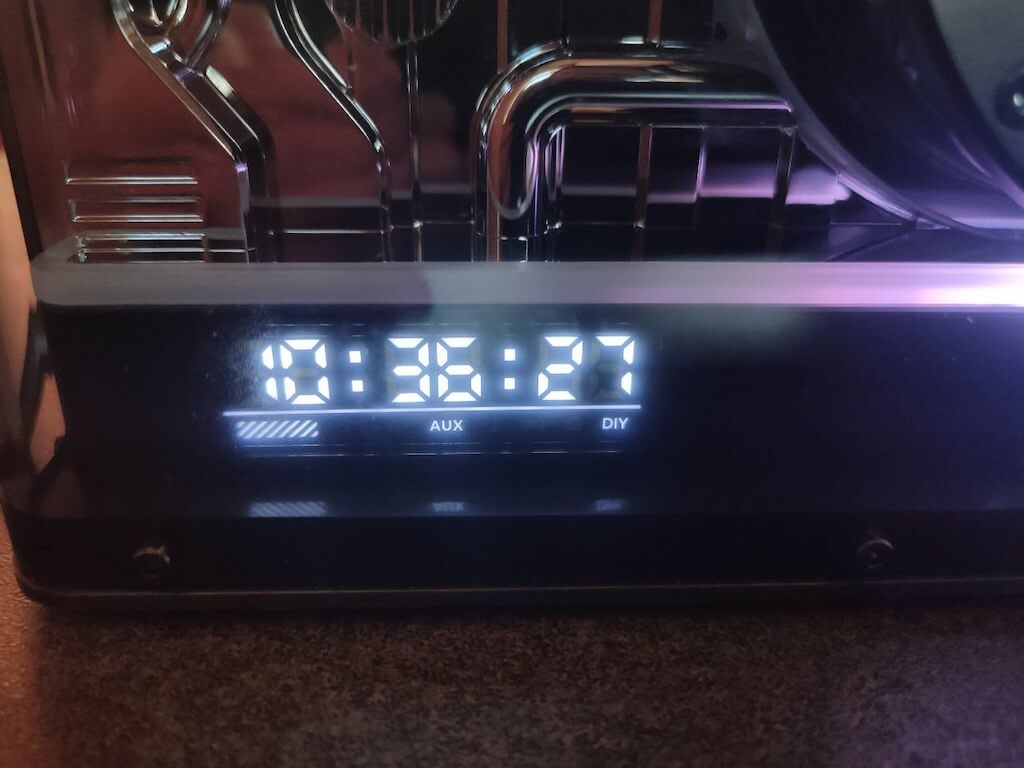 QD35'in sol alt köşesinde dijital bir LED saati konumlandırılmıştır. Uygun bir özellik, akıllı telefonunuzun zamanıyla senkronize edebilmesi ve manuel olarak ayarlamanın zorluğunu kaydetmesidir.