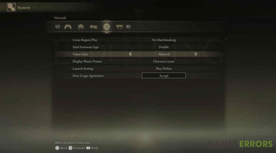 - Sesli sohbeti açmak içinAyarlar>Ağ> setSesli sohbetileİzin verilmiş.