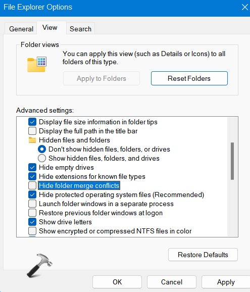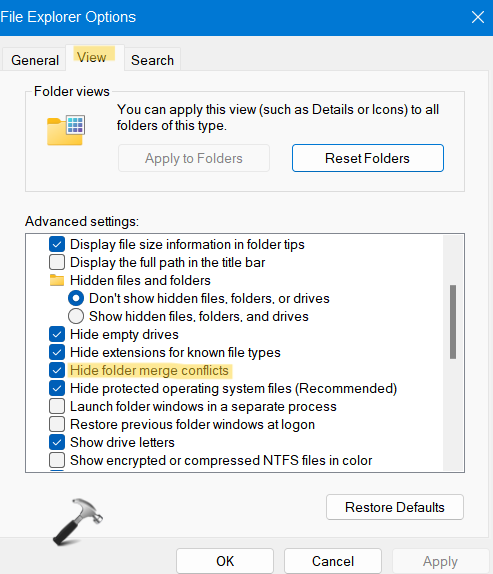 Windows 11'deki Klasör Birleştirme Çatışmalarını Etkinleştir/Devre Dışı Bırak