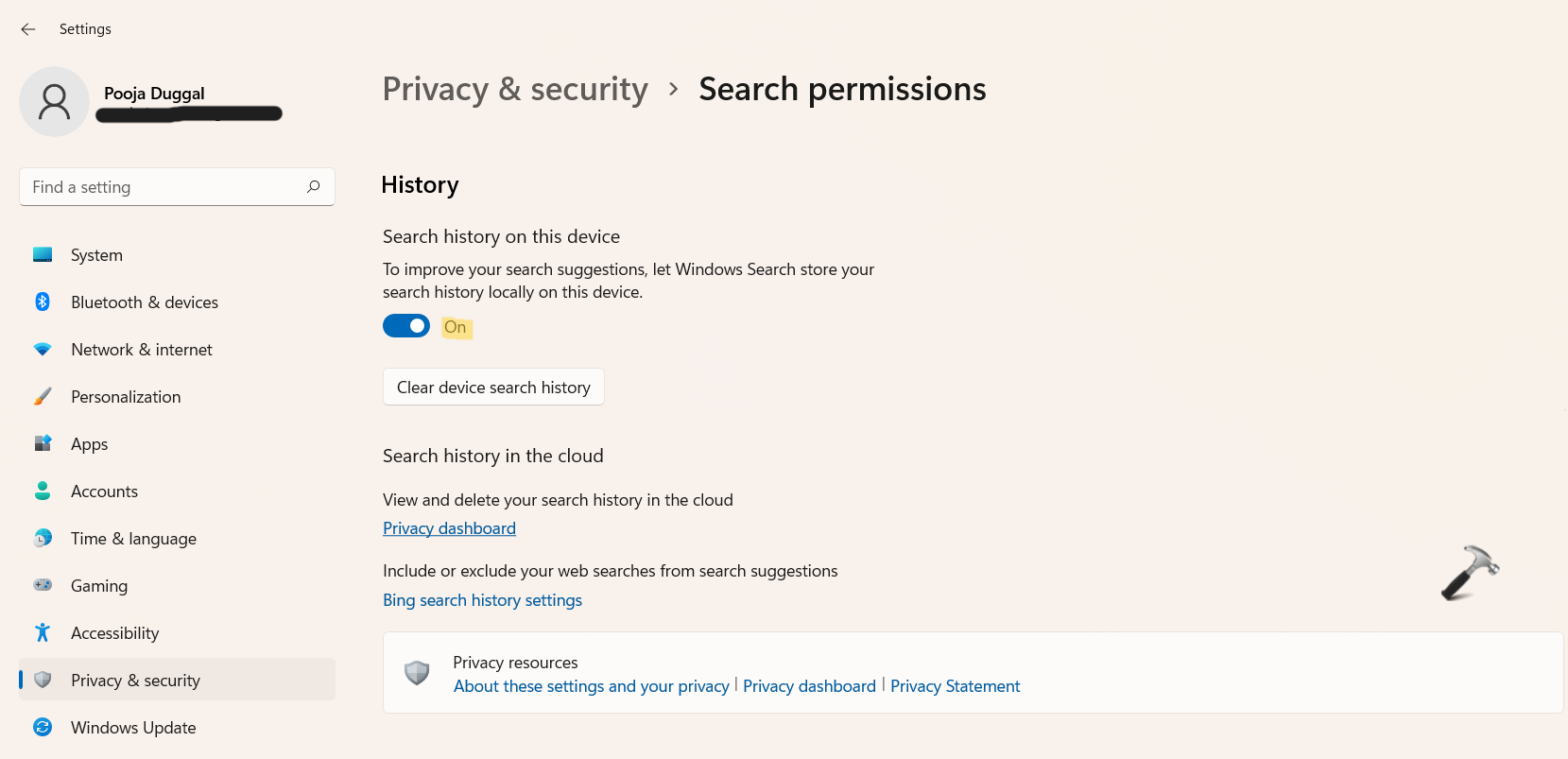 Windows 11'de arama geçmişini etkinleştir/devre dışı bırakın