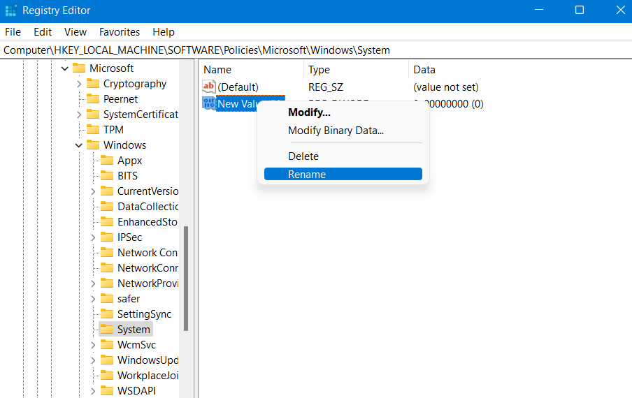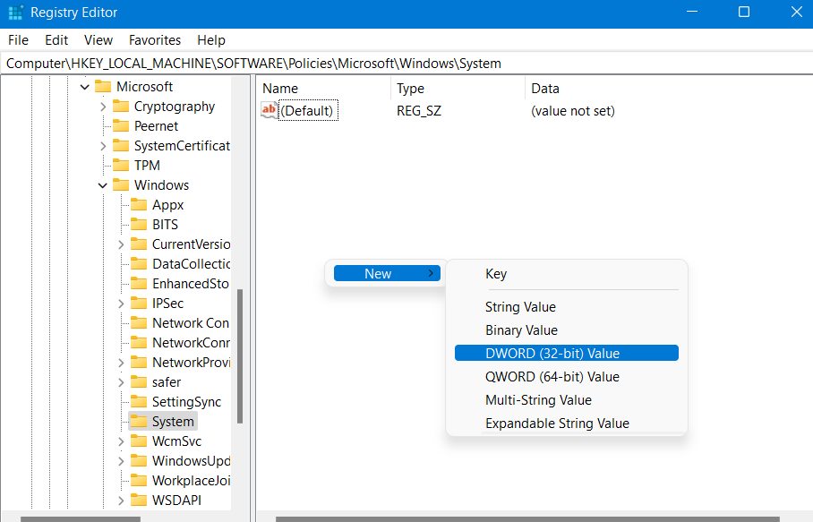 HKEY_LOCAL_MACHINESOFTWAREPoliciesMicrosoftWindowsSystem