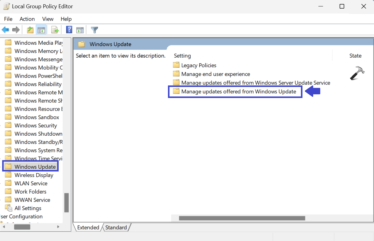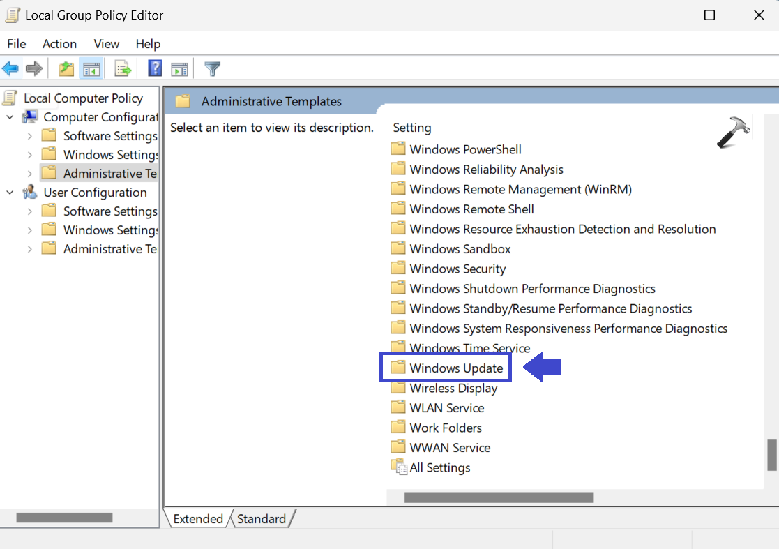 Computer ConfigurationAdministrative TemplatesWindows Update
