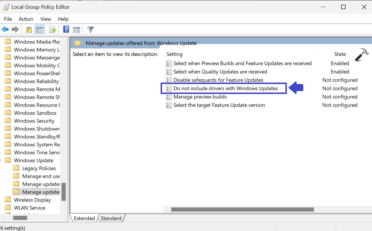 4. “Windows güncellemesine sahip sürücüyü eklemeyin” üzerine çift tıklayın.
