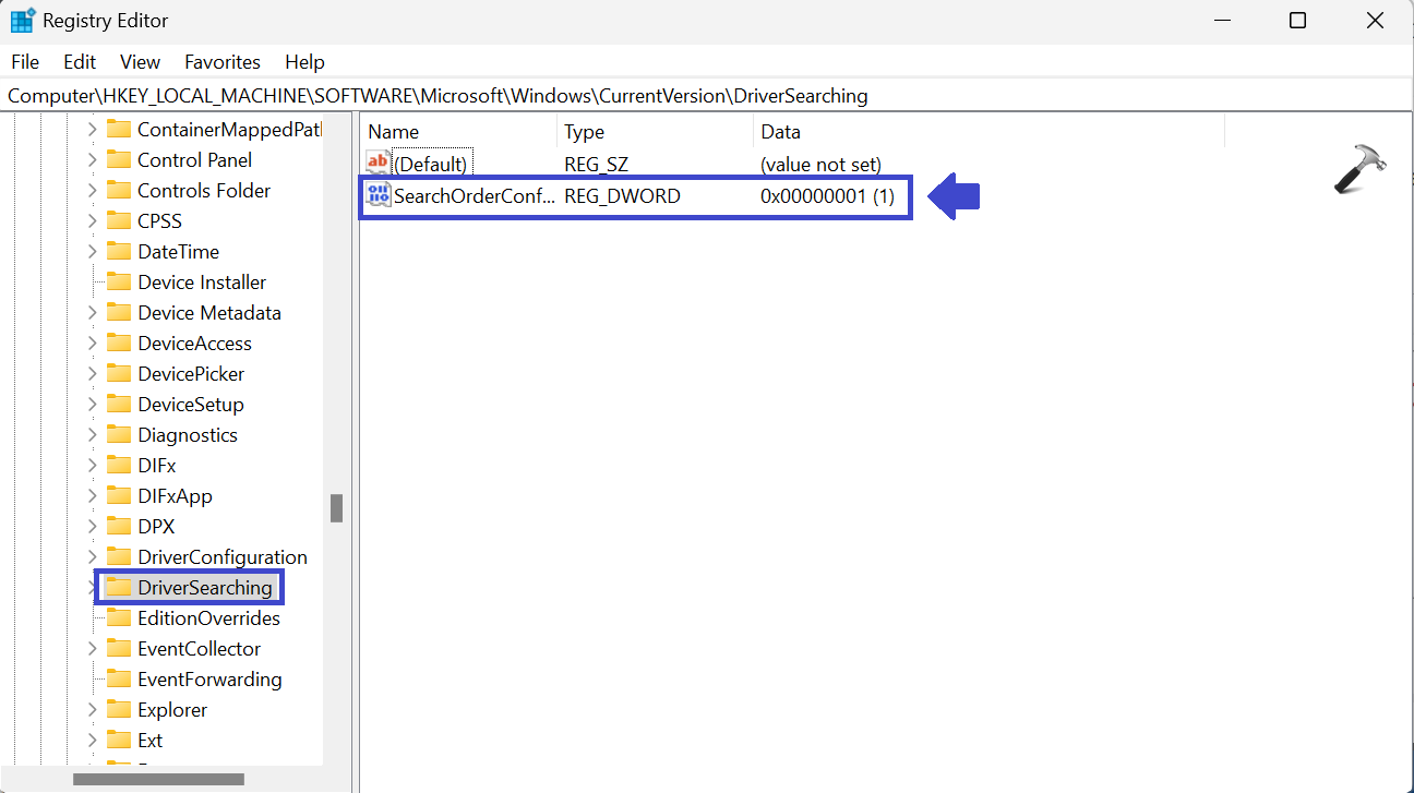 ComputerHKEY_LOCAL_MACHINESOFTWAREMicrosoftWindowsCurrentVersionDriverSearching