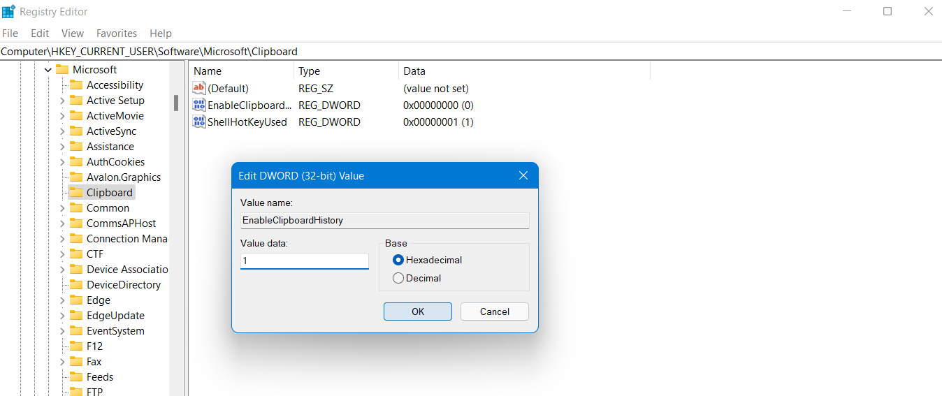 HKEY_CURRENT_USERSoftwareMicrosoftClipboard