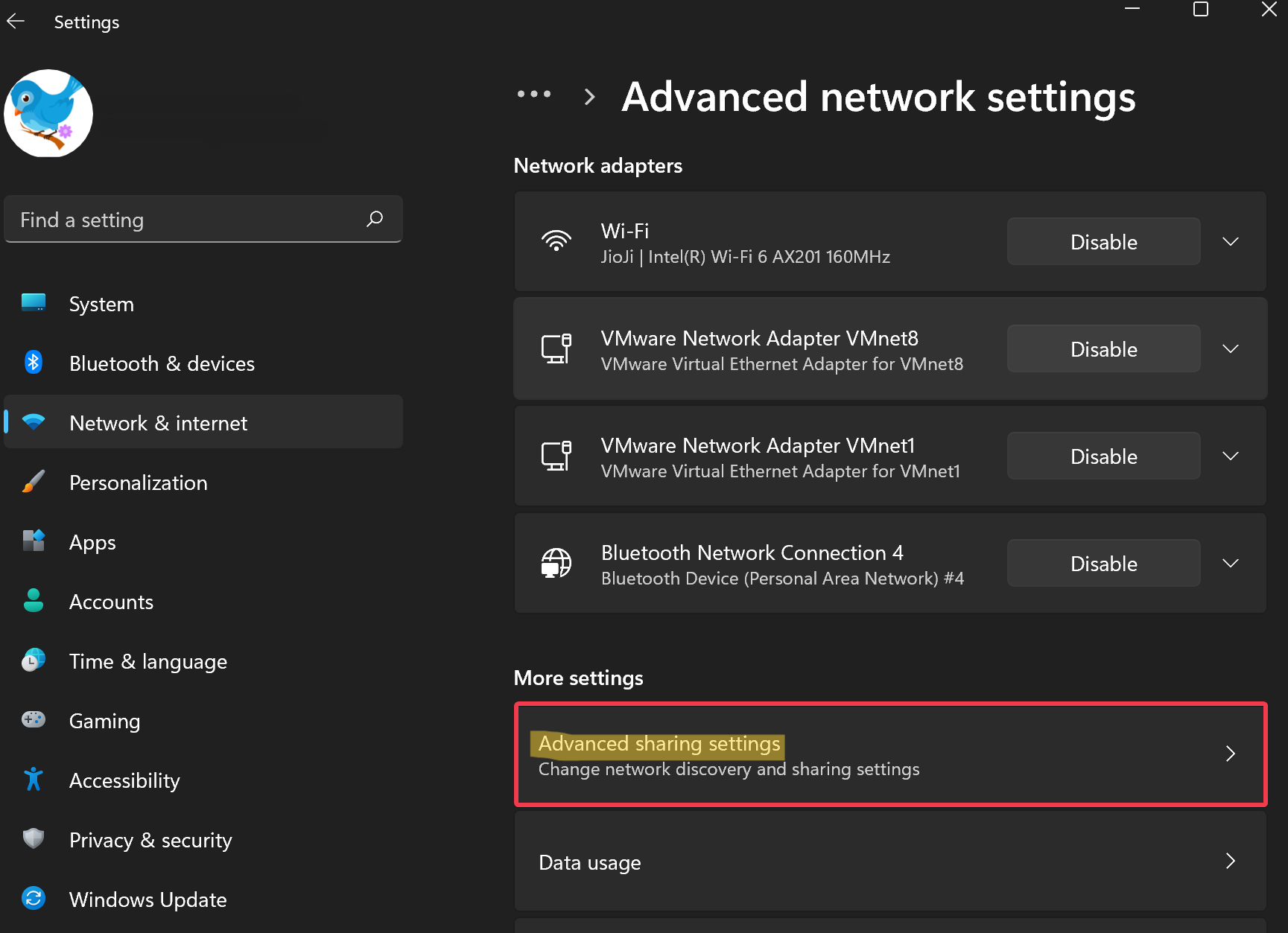 Oradan tıklayınGelişmiş Paylaşım Ayarlarını Değiştirinsolda mevcut.