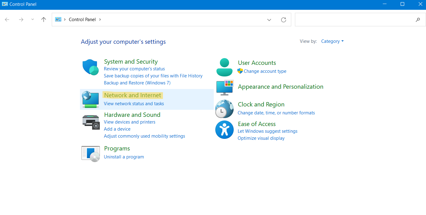 1.AçıkKontrol PaneliSisteminizde ve seçinAğ ve İnternet.