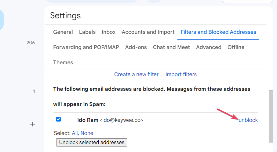 E -postaların nasıl engellenebileceğiniz farklı e -posta hizmetleri ve uygulamalar arasında değişir. Ancak, filtre ayarlarında sık sık engellenmiş e -postaları bulabilirsiniz. Örneğin, Gmail'de tıklayabilirsinizAyarlar>Tüm ayarları görün>Filtreler ve bloke edilmiş adreslerEngellenen e -posta etki alanlarını görüntülemek için.