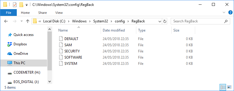 - Aşağıdaki klasöre gidin: C: WindowsSystem32Configregback