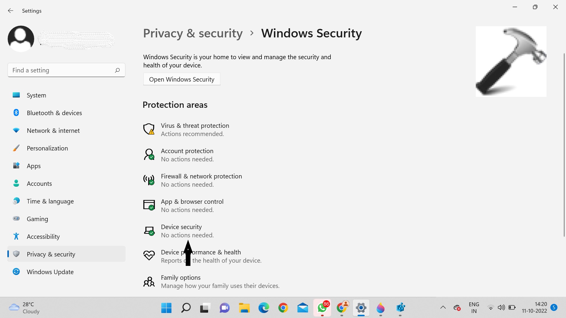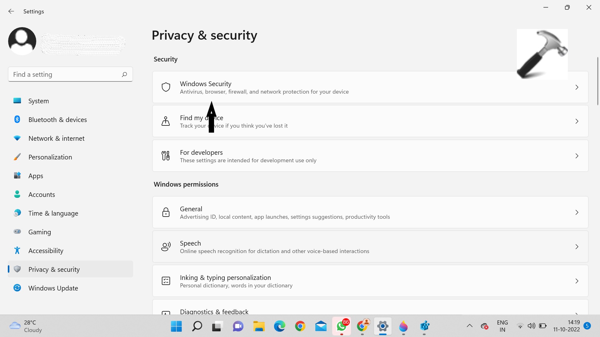 2. SeçinGizlilik ve GüvenlikSol bölmeden.