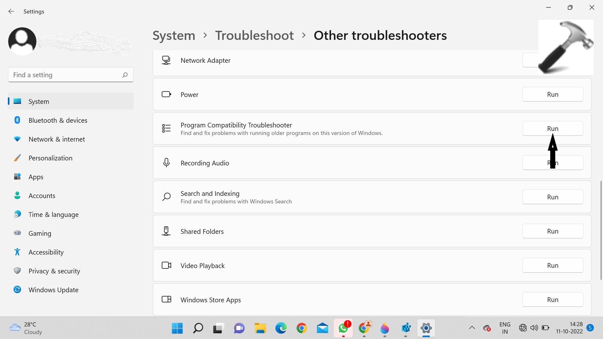 4. Şimdi aşağı kaydırın ve tıklayınKoşmakyanındaProgram Uyumluluk Sorun Giderici.