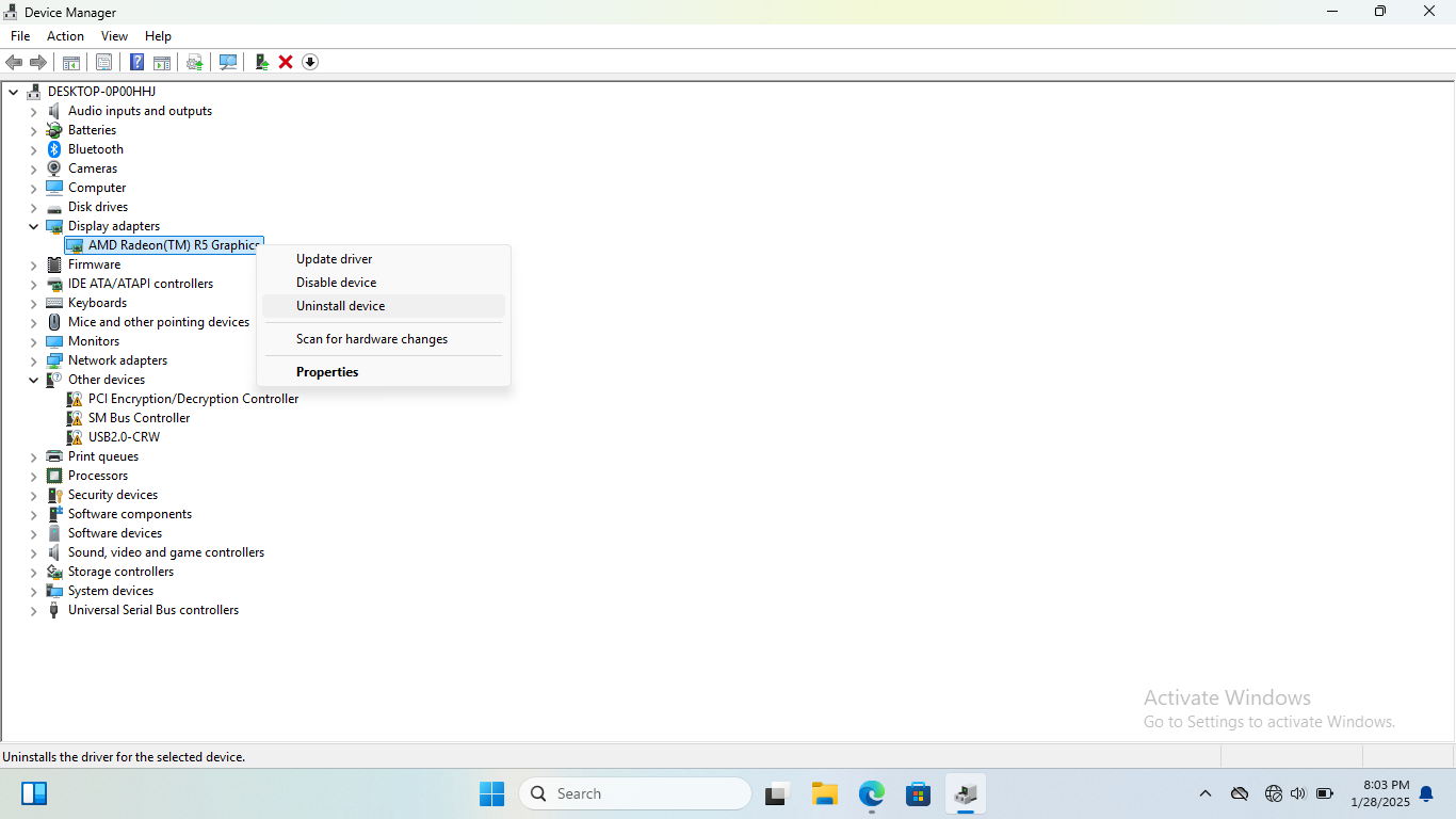 Adım 2-Ekran adaptörlerini açın ve sürücüye sağ tıklayın. Şimdi, aygıtı kaldırın ve ardından kaldırın.