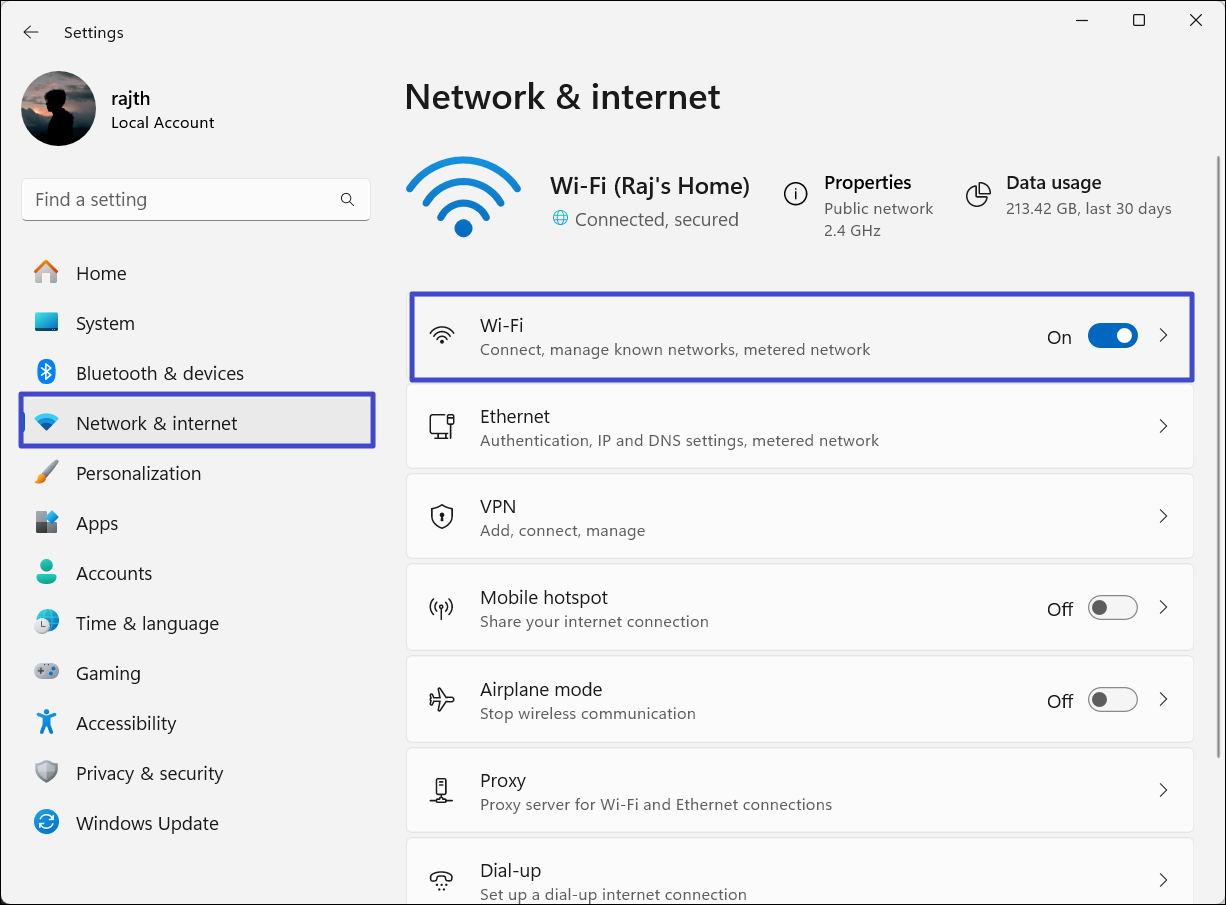 3. Ardından, şu anda kullandığınız ağ bağlantısını seçin.