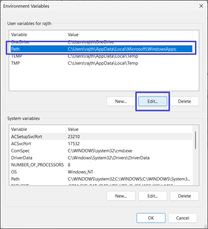 3..Yol"değişken ve ardından "Düzenlemek"düğme.