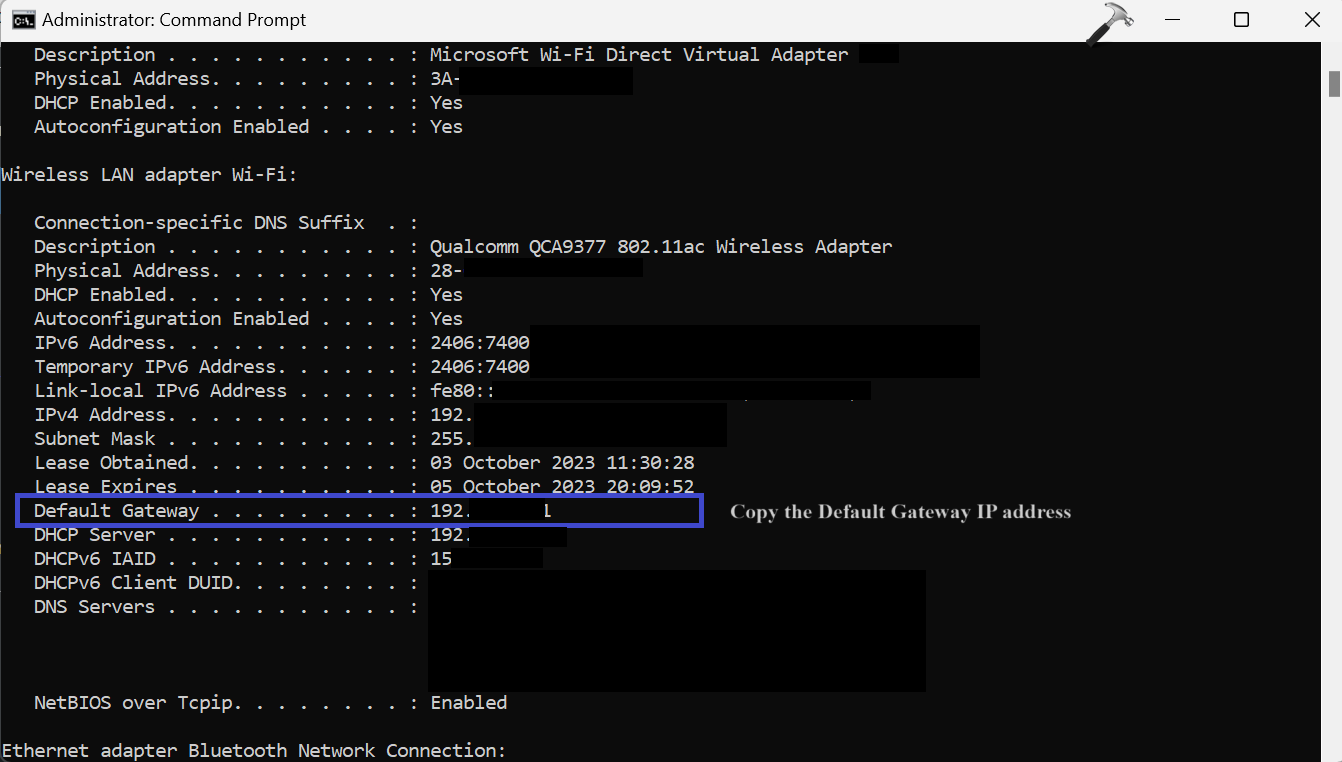 3. Şimdi. Yönlendirici Ağ Geçidi IP adresini kopyalayın. IP adresini komut istemine yapıştırın ve Enter tuşuna basın. Bu, yönlendirici giriş sayfasını açacaktır.