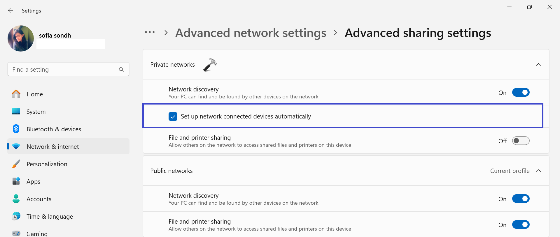 3. İşte, "Ağ bağlantılı cihazları otomatik olarak ayarlayın" seçenek.