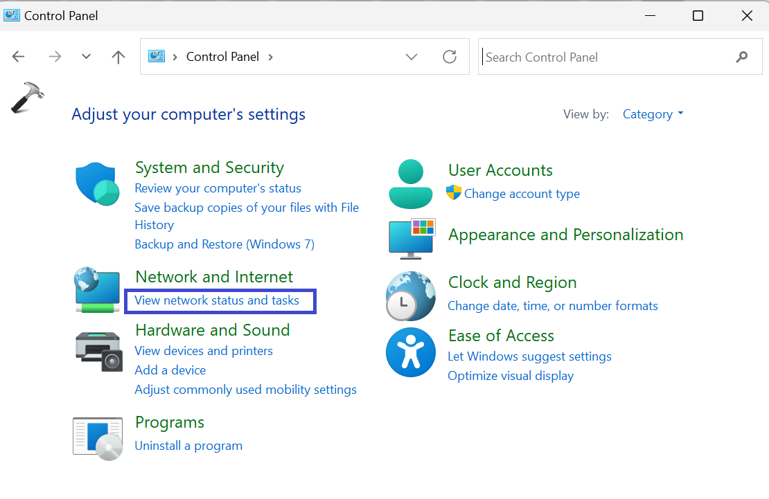 1. Kontrol panelini açın ve"Ağ durumunu ve görevleri görüntüleyin""Ağ ve İnternet" bölüm.