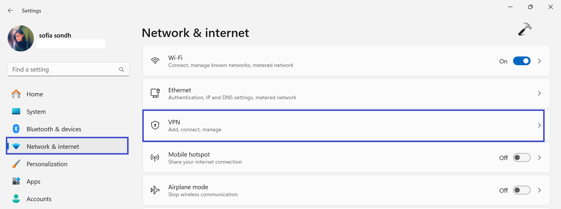 2. Çalışan VPN bağlantınız varsa VPN bağlantısını arayın.