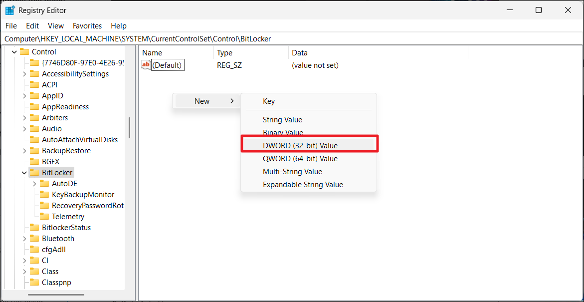 ComputerHKEY_LOCAL_MACHINESYSTEMCurrentControlSetControlBitLocker