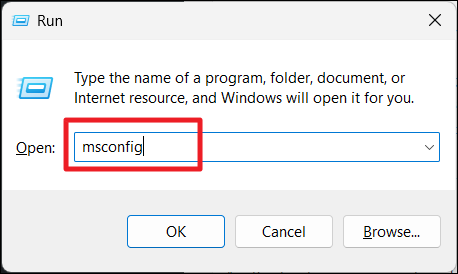1. Çalıştır iletişim kutusunu açın, “yazın”Msconfig ”ve Enter tuşuna basın.
