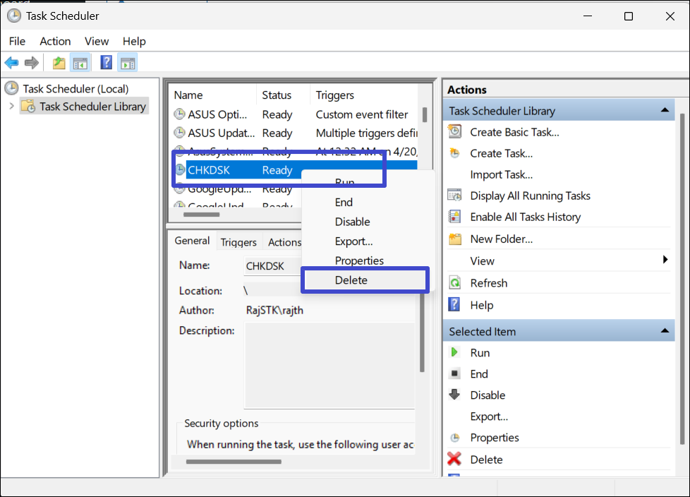 Bazı durumlarda, chkdsk planlanmış bir görev olarak ayarlanırsa, pencereler başladığında sıkışabilir. Bunu önlemek için ChDSK'yı planlanan görev listesinden kaldırmanız gerekir.
