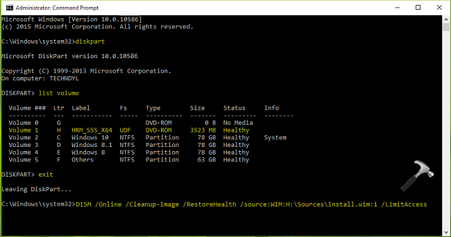 Bunu bitirdikten sonra, DISS /Çevrimiçi /Temizleme-İmage /RestoreHealth komutunu yeniden denetleyebilirsiniz.