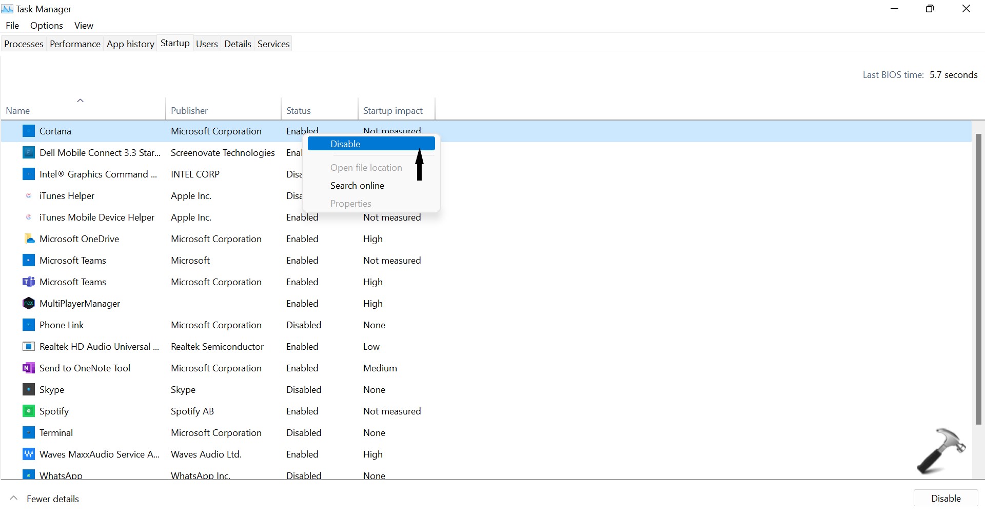 3. Şimdi, istediğiniz uygulamaları seçebilirsiniz.devre dışı bırakmakbaşlangıç özelliği. Gereksiz tüm girişimleri devre dışı bırakmak için bu seti kopyalayın.