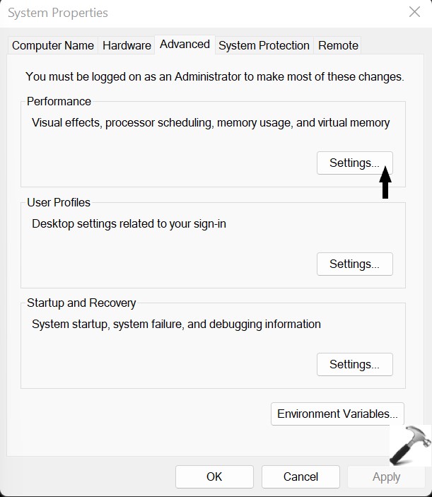 3. Şimdi seçinAyarlarAltında DüğmePerformans.