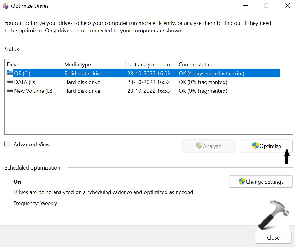 2. Şimdi, açığa çıkarmak istediğiniz sürücüyü seçin ve tıklayın.Düğmesini optimize etÇıkarmak için.