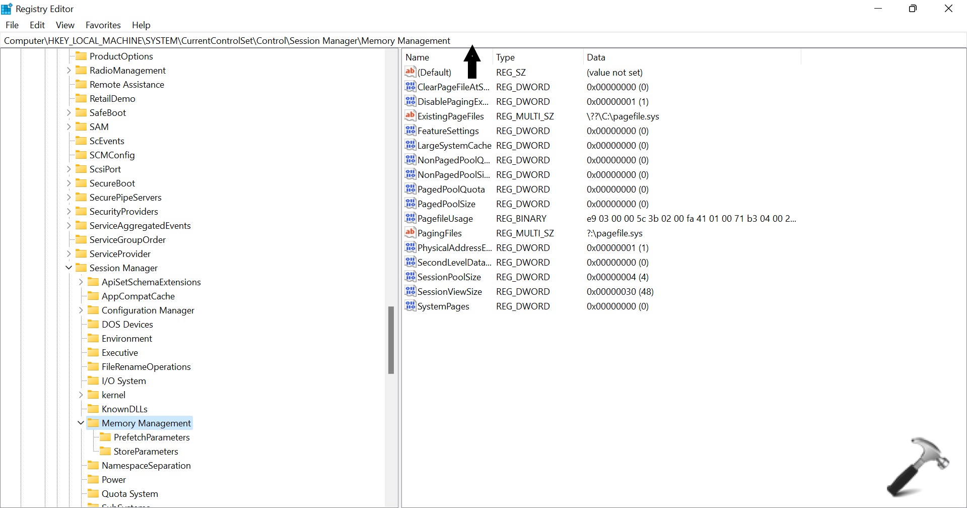 ComputerHKEY_LOCAL_MACHINESYSTEMCurrentControlSetControlSession ManagerMemory Management