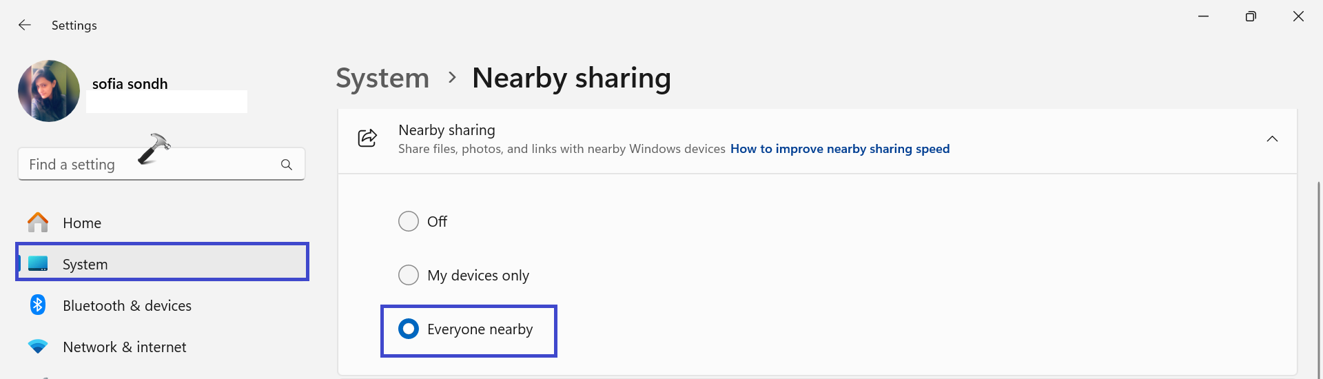 Yakındaki Paylaşımı Düzeltmek için Yakındaki Paylaşım Ayarlarını inceleyerek Windows 11'de çalışmıyor: