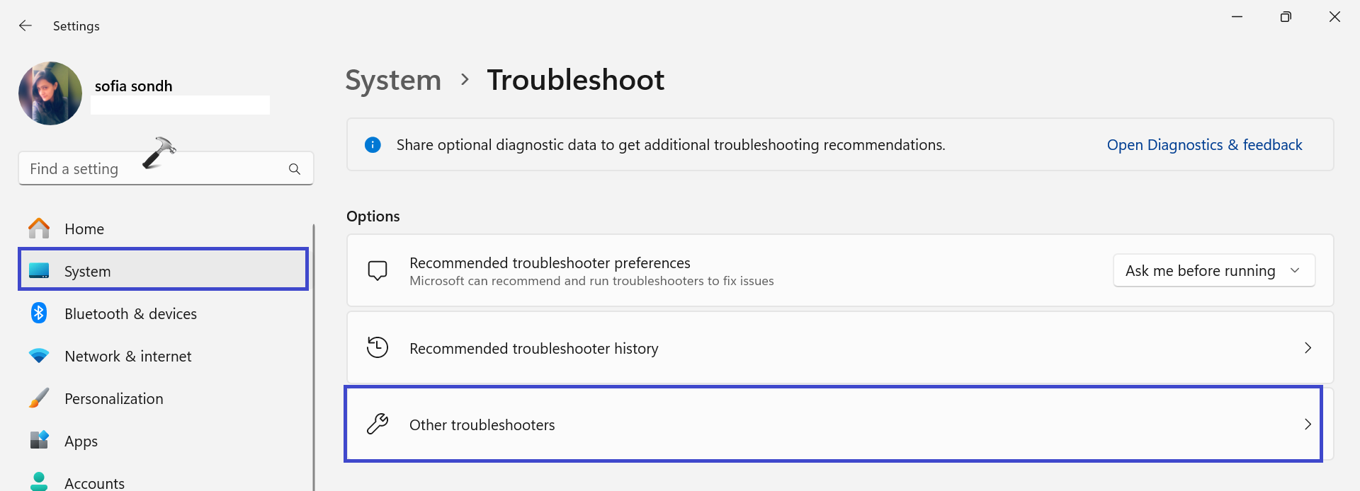 2. Sonra, “Diğer Sorun Giderici".