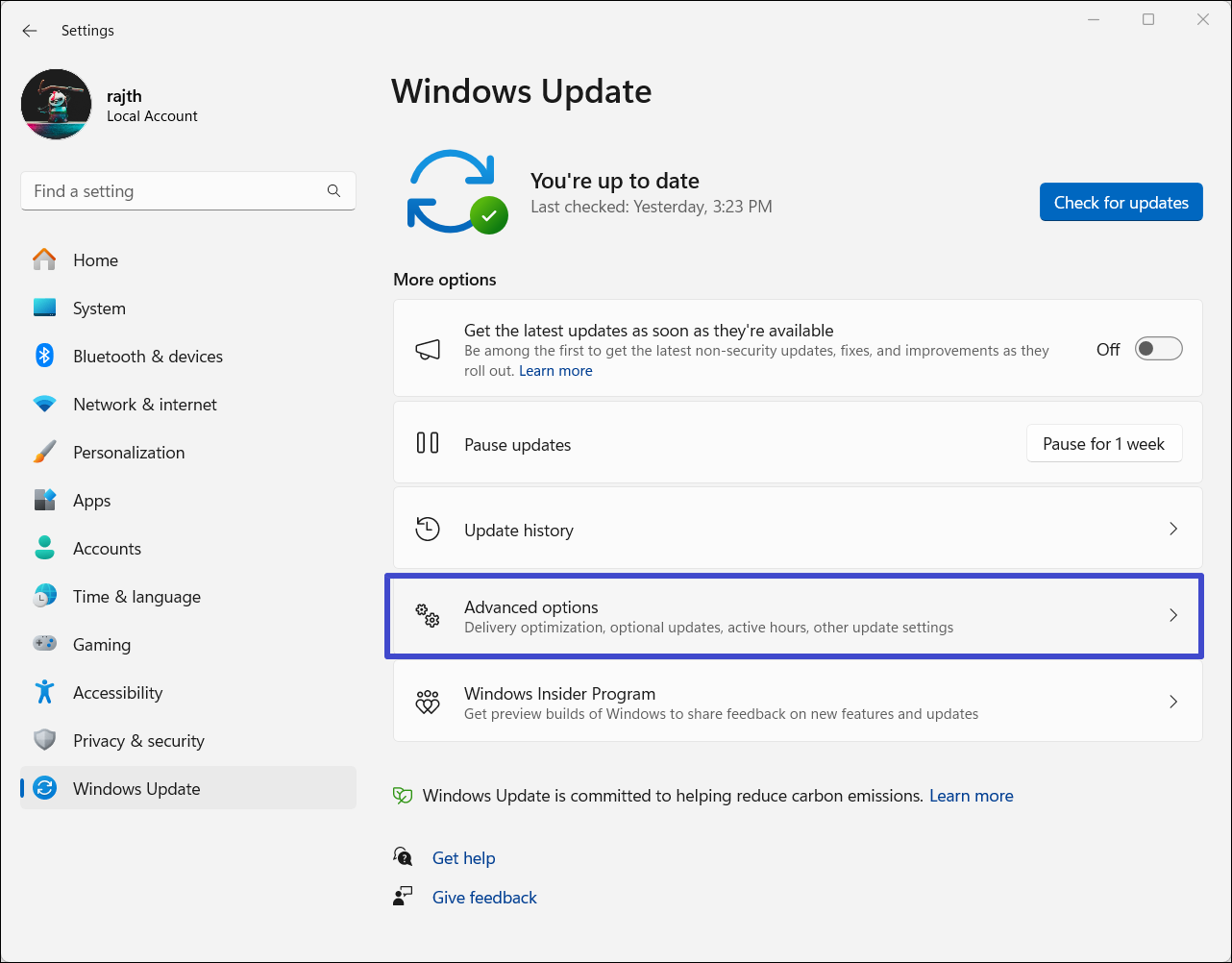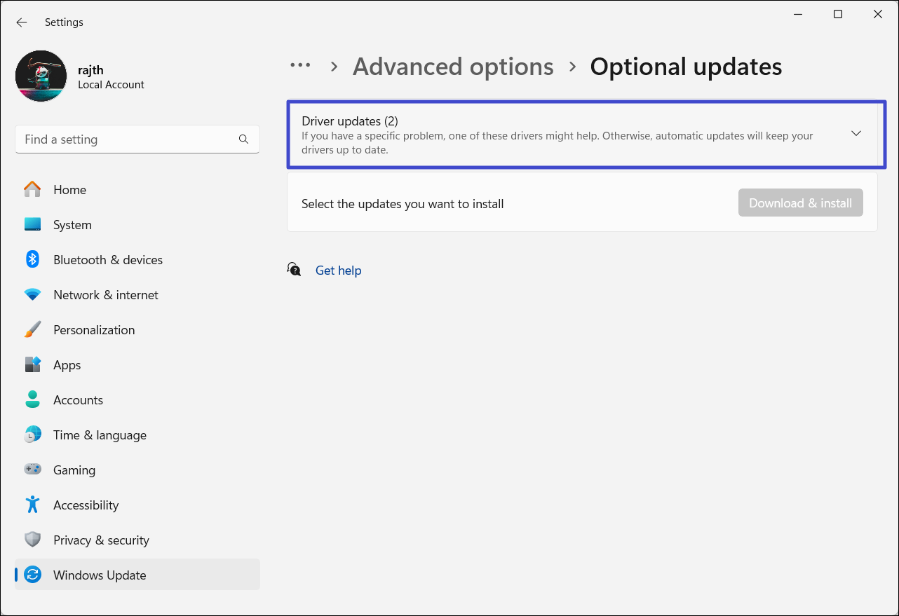 5. altındaEk SeçeneklerMenü, tıklayın “İsteğe bağlı güncellemeler ”.